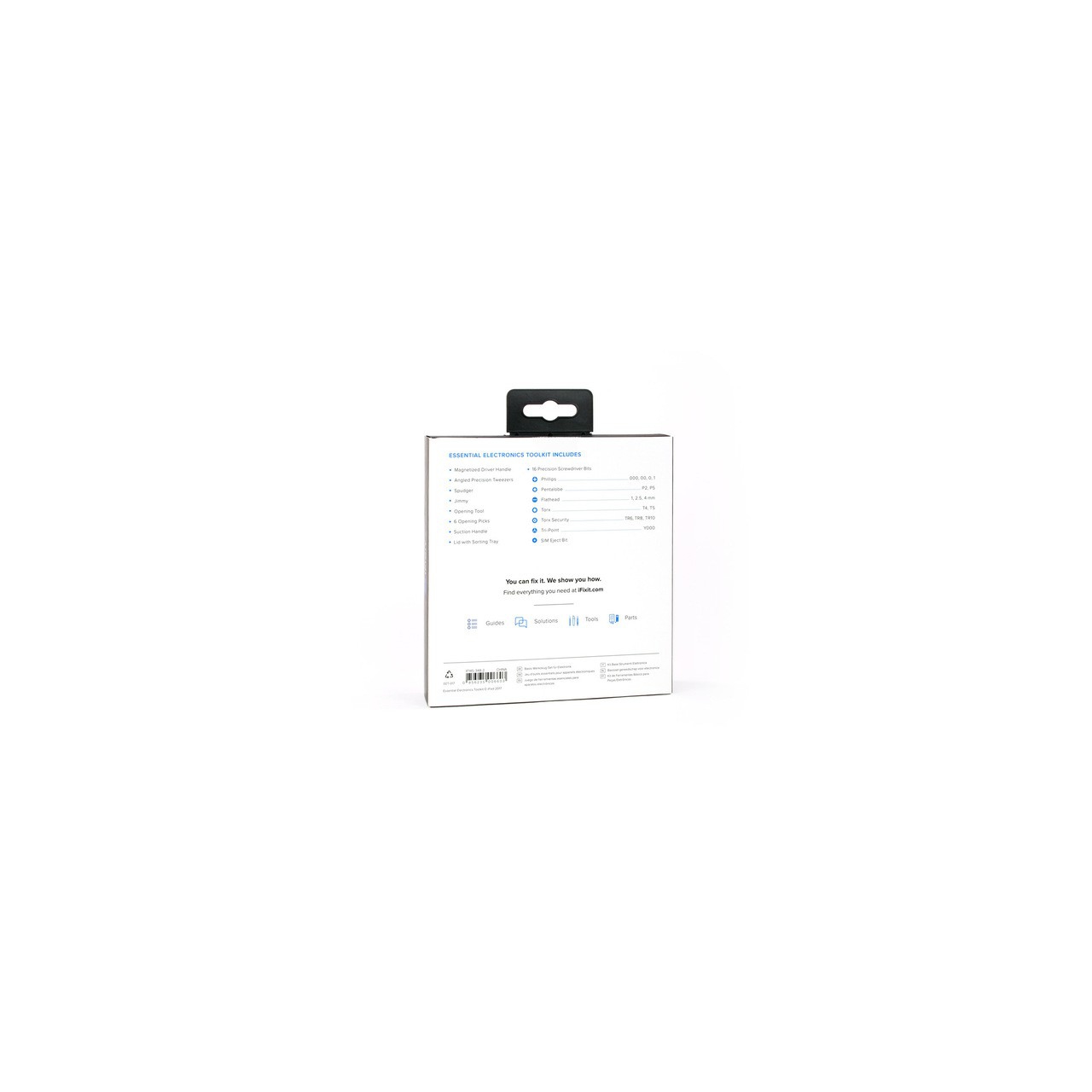 Zestaw narzędzi Essential Electronics Toolkit jest tym, czego potrzebujesz do wykonania najczęstszych napraw sprzętu elektronicznego, takich jak naprawa ekranu lub wymiana baterii w smartfonie. Zawiera wszystkie podstawowe narzędzia, które pomogą w naprawie większości urządzeń. Będzie również przydatny jako domowy narzędziowy niezbędnik potrzebny do szybkich napraw klamek drzwi, sprzętu AGD RTV, okularów i innych